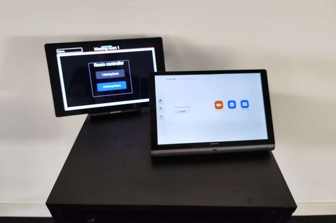 A gestão das salas é feita através de sistema de controlo Crestron, com painéis tácteis que simplificam a operação de todos os dispositivos. Além disso, foram incluídos painéis de agendamento Crestron junto às entradas das salas, facilitando a reserva e a visualização da disponibilidade em tempo real.