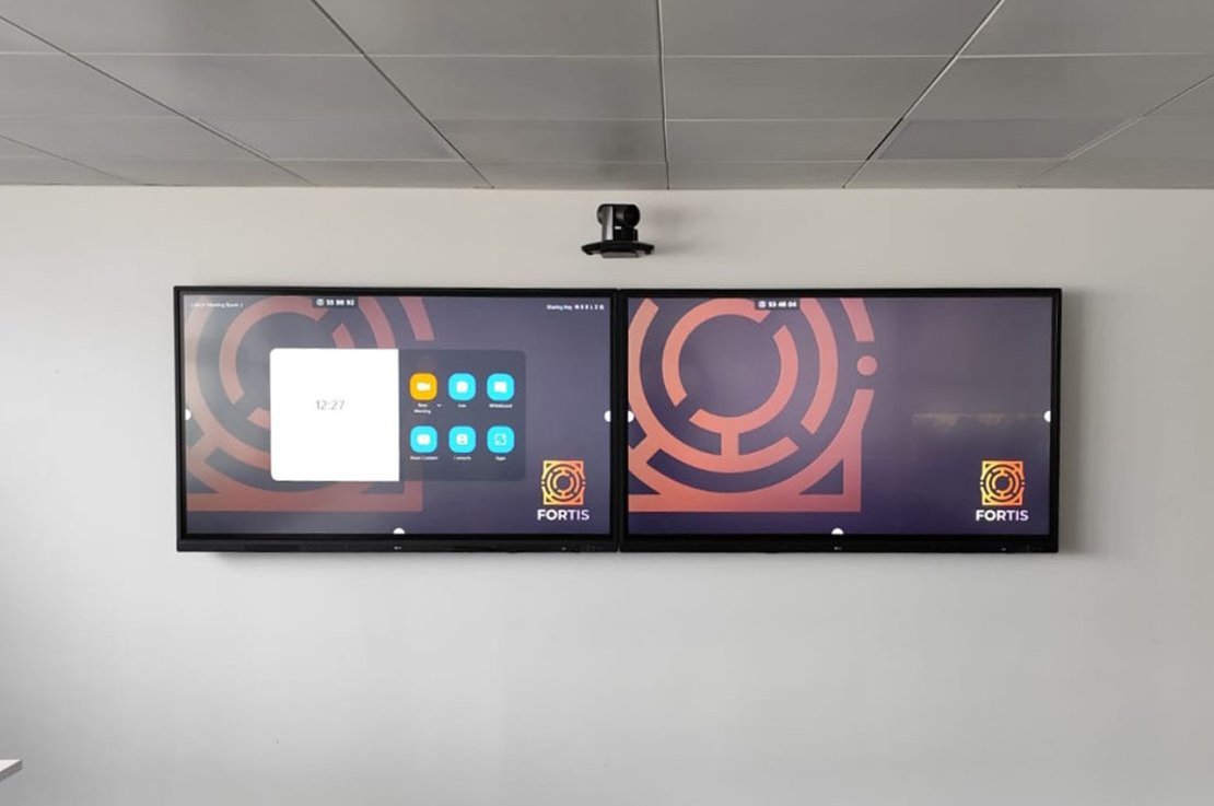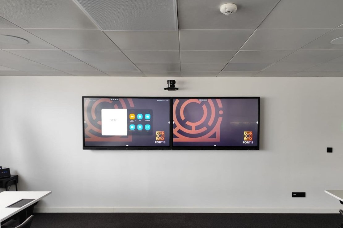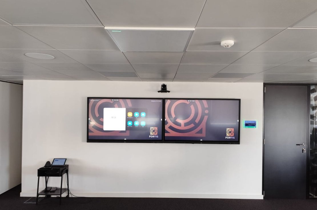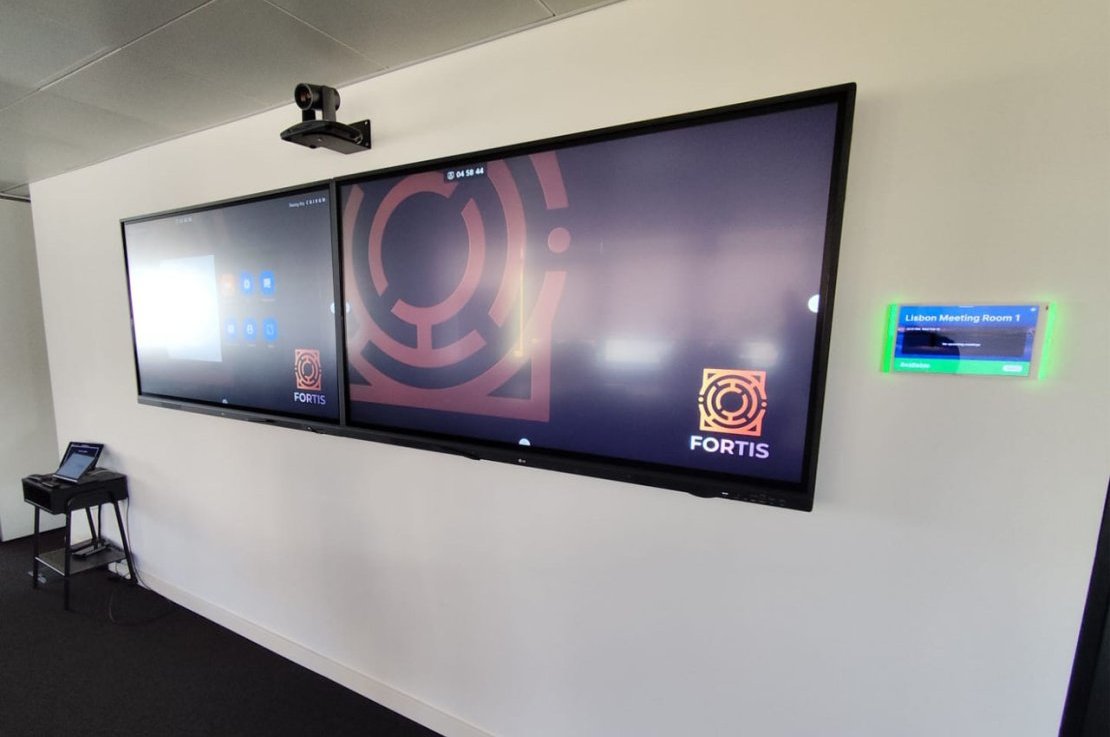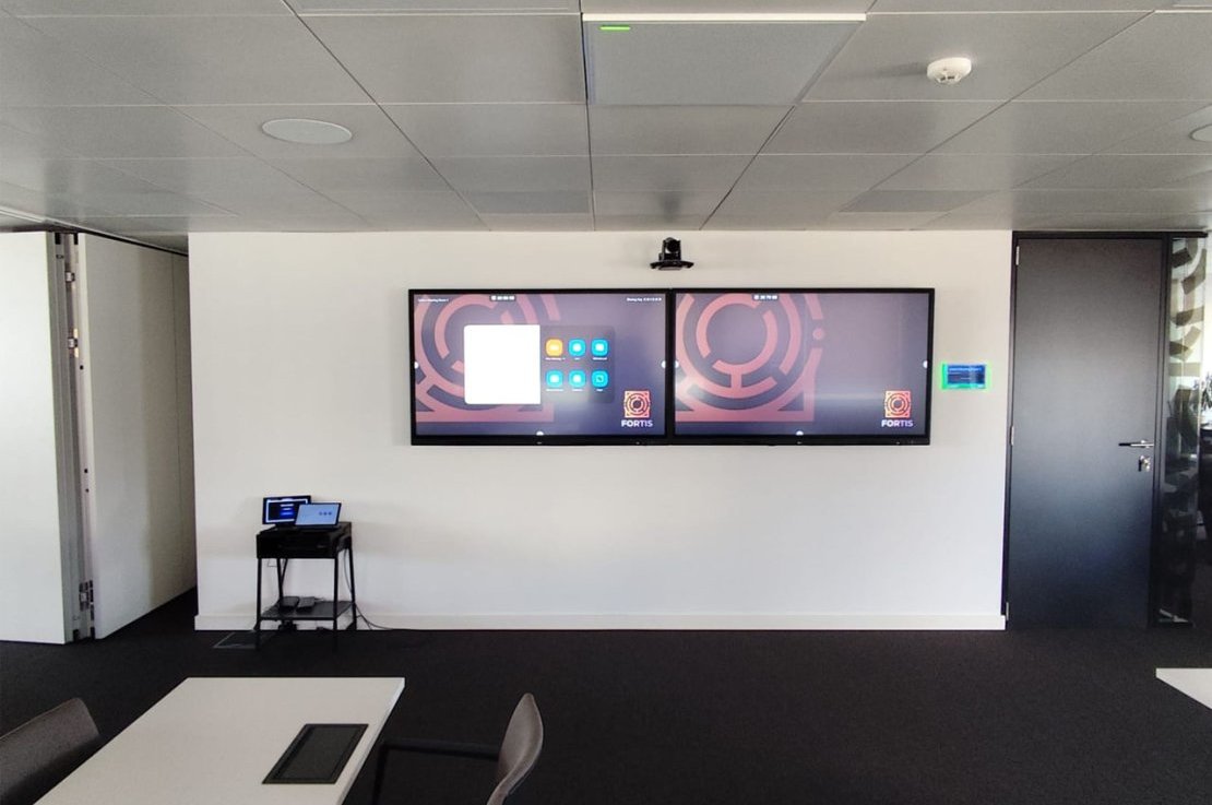 O projeto Fortis inclui a implementação de várias salas de reunião equipadas com sistemas de videoconferência Crestron, garantindo uma comunicação eficiente e estável. Cada sala foi ainda dotada de microfones de teto SHURE, assegurando uma captação de áudio clara e abrangente para todos os participantes.