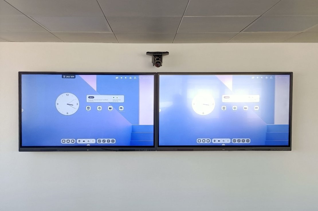 Para elevar a produtividade e a colaboração, foram instalados monitores interativos LG de 65", que permitem a partilha dinâmica de conteúdos, anotações em tempo real e uma experiência tátil intuitiva.